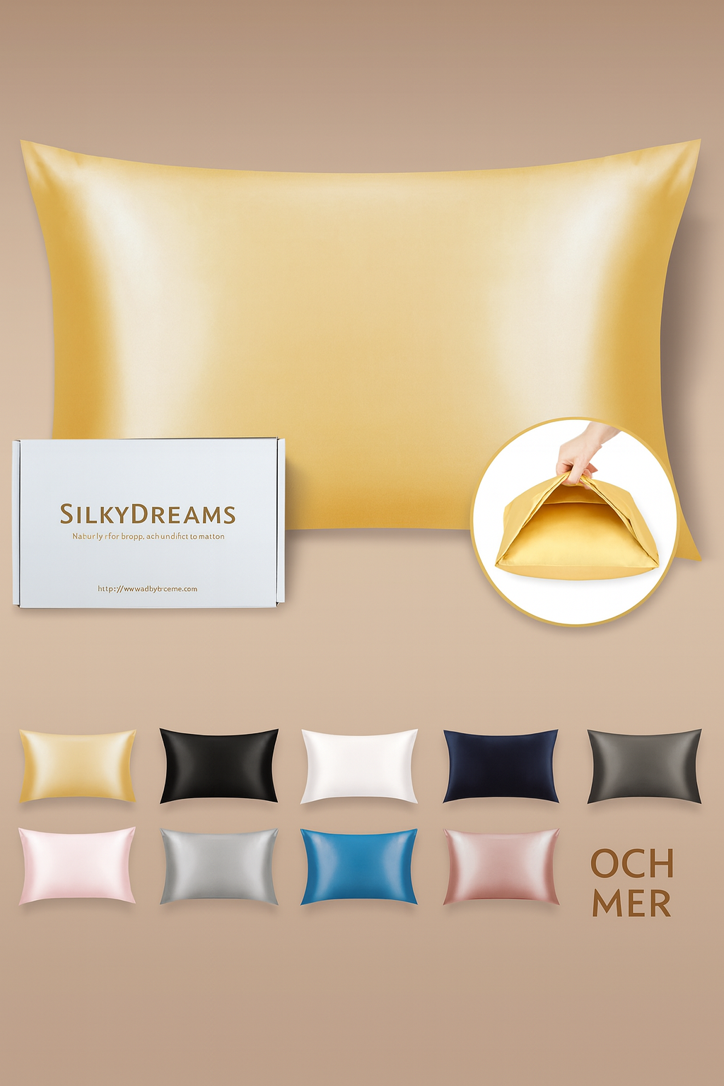 SilkyDreams kuddfodral i 100 % silke och bevarar fukt, minskar rynkor och ger dig den där naturliga lystern – varje morgon. Sov med silke, vakna med självförtroende.